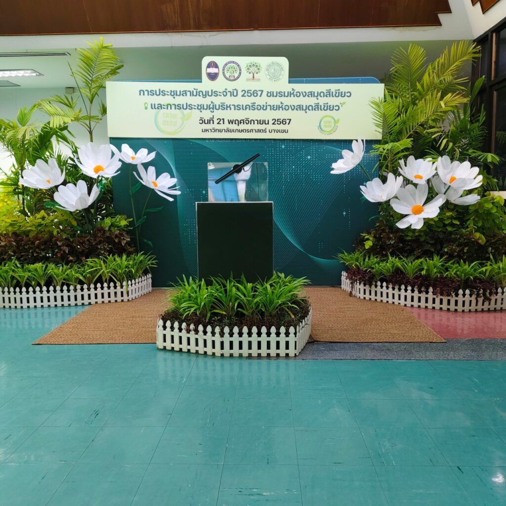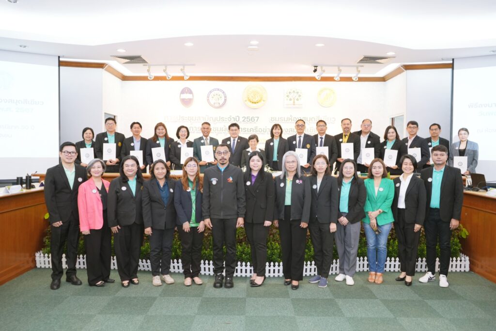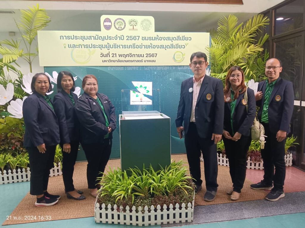 วันที่ 21 พฤศจิกายน 2567 เวลา 08.00 – 16.30 น. สำนักวิทยบริการและเทคโนโลยีสารสนเทศ มหาวิทยาลัยราชภัฏสกลนคร เข้าร่วมการประชุมผู้บริหารเครือข่ายห้องสมุดสีเขียวและพิธีลงนามความร่วมมือเครือข่ายห้องสมุดสีเขียว โดยมี อาจารย์กรกช มาตะรัตน์ ผู้อำนวยการสำนักวิทยบริการและเทคโนโลยีสารสนเทศ พร้อมด้วยอาจารย์รุจิรา จงคล้ายกลาง รองผู้อำนวยการสำนักวิทยบริการและเทคโนโลยีสารสนเทศ และตัวแทนบุคลากรเข้าร่วมการประชุมสามัญประจำปี 2567 ชมรมห้องสมุดสีเขียว ณ ห้องประชุมกำพล อดุลวิทย์ อาคารสารนิเทศ 50 ปี มหาวิทยาลัยเกษตรศาสตร์ บางเขน และจัดพิธีลงนามความร่วมมือเครือข่ายห้องสมุดสีเขียว จำนวน 49 หน่วยงาน (54 ห้องสมุด) มี อาจารย์กรกช มาตะรัตน์ ผู้อำนวยการสำนักวิทยบริการและเทคโนโลยีสารสนเทศ ลงนามในบันทึกข้อตกลง มีวัตถุประสงค์เพื่อร่วมกันพัฒนาเครือข่ายความร่วมมือห้องสมุดสีเขียว ส่งเสริมและสนับสนุนการดำเนินงานในการตรวจประเมินห้องสมุดสีเขียว สนับสนุนและพัฒนากิจกรรมส่งเสริมการเรียนรู้ด้านสิ่งแวดล้อม ร่วมกันพัฒนาและให้บริการสารสนเทศด้านสิ่งแวดล้อม และร่วมกันลดปริมาณการปล่อยก๊าซเรือนกระจก โดยข้อตกลงความร่วมมือดังกล่าว จะสิ้นสุดในวันที่ 31 ธันวาคม 2570